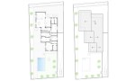 La volumetría de la vivienda hace referencia a tres volúmenes con cubiertas inclinadas que se maclan y se desfasan a lo largo de la parcela constituyendo el sello de identidad de la casa. El primer volumen y mas pequeño se identifica con el dormitorio principal en suite, el segundo con el resto de dormitorios y un baño, y el tercer volumen responde a la zona de día. La ubicación del estudio constituye la charnela entre ambas zonas (noche-día).